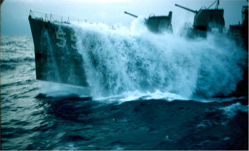 | 167k | USS Laws during a typhoon in 1956 off Okinawa trying to come alongside the USS Kawishiwi AO 146 to refuel. | Joe Ruschetti (MMC USN ret) |