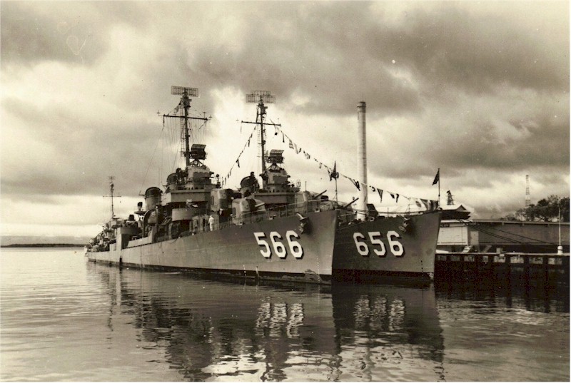 | 120k | USS Stoddard (DD-566) and USS Braine (DD-630) at San Diego, circa 1956-57. | Everett Ellestad |