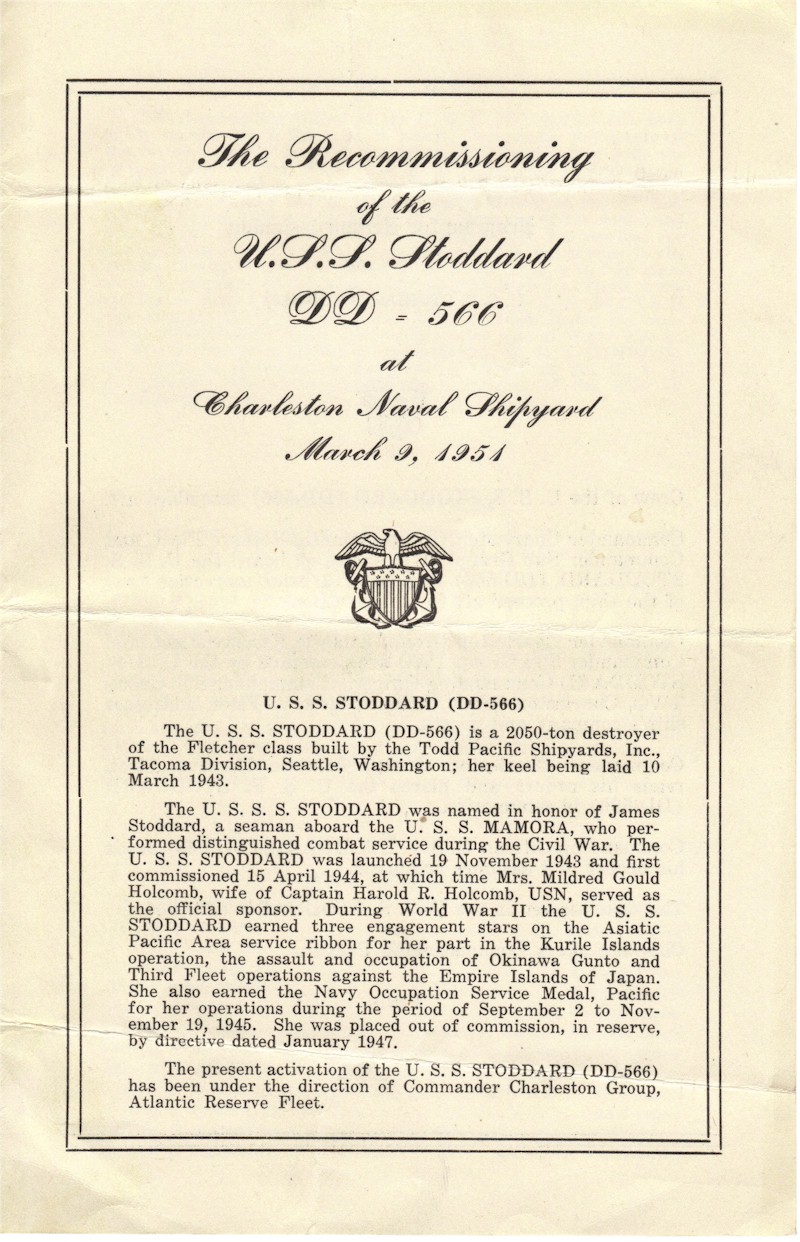 | 270k | Cover of the recommissioning pamphlet, 09 March 1951. | Robert M. Cieri |