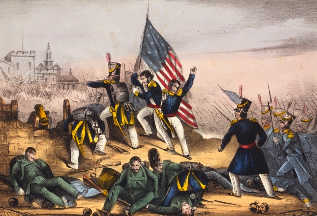 During the battle at Chapultepec, 90 percent of the Marine officers and noncommissioned officers who fought were killed. In honor of these officers and NCOs, Marine Corps tradition maintains that all officers and noncommissioned officers shall be entitled to wear a red stripe on the trousers of the Dress Blue Uniform. Commonly referred to as the blood stripe, it serves as a reminder to all Marines of the blood that was shed in the capture of Chapultepec. 0512707: Library of Congress photo digital ID: cph 3g06207 0512725: Painting of Major Levi Twiggs, source unknown | [1] Robert M. Cieri / Dave Wright [2] Dave Wright | |