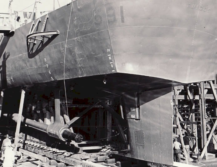 99k | Twiggs on the ways prior to launching, early 1943. | Anonymous donor in memory of Twiggs and her crew | |