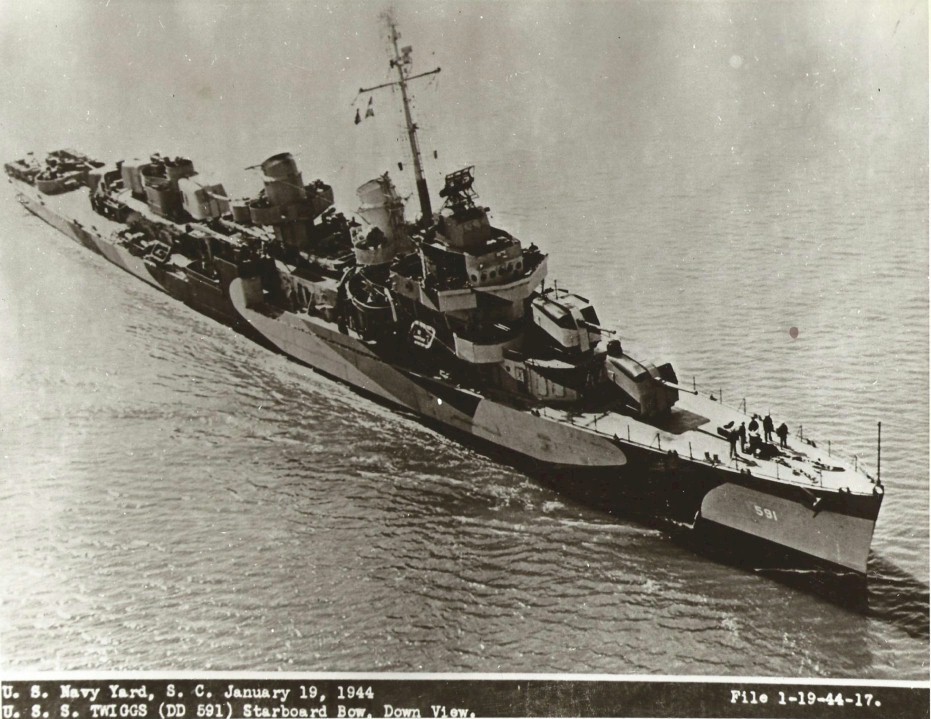 38k | Undated, location unknown. Bureau of Ships photo BS58063 (19-LCM-DD-591-58063) | Anonymous donor in memory of Twiggs and her crew | |