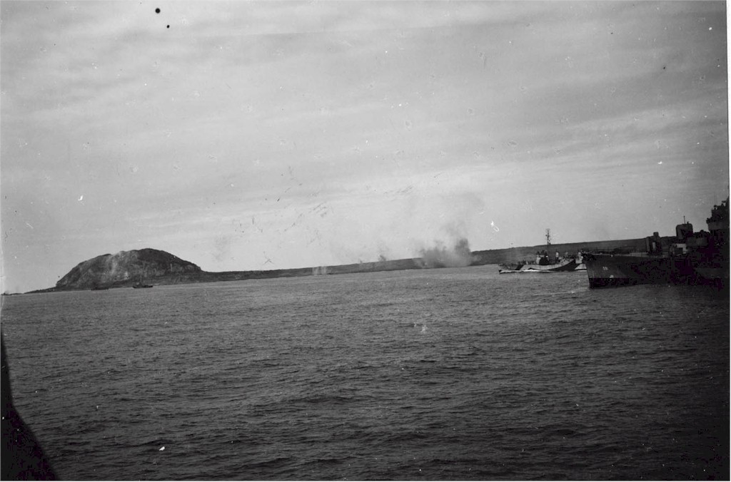 133k | USS Twiggs off Iwo Jima, with Mount Suribachi prominent in the background, 17 February 1945, as seen from the LCI-474. | Anonymous donor in memory of Twiggs and her crew | |