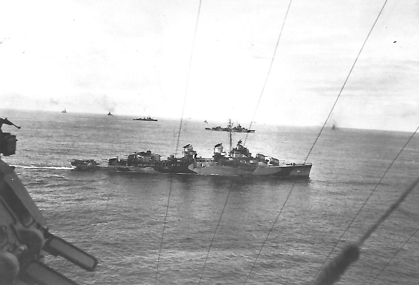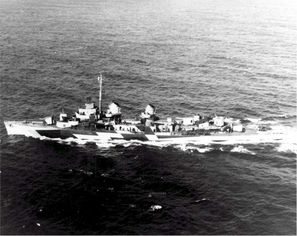 185k | USS Twiggs (DD-591) underway off Hampton Roads, 07 February 1944. photographed by Naval Air Station Weeksville at position: 36°54', 75°13'; Course: 265; Time: 1414; Altitude: 300'; Camera: K-20; F.L. 4.5"; Shutter speed: f/250. On this date, Twiggs rendezvoused with cruiser Miami (CL-89) in Delaware Bay and screened the new cruiser to Norfolk. National Archives photo 80-G-215535 | Mike Green | |