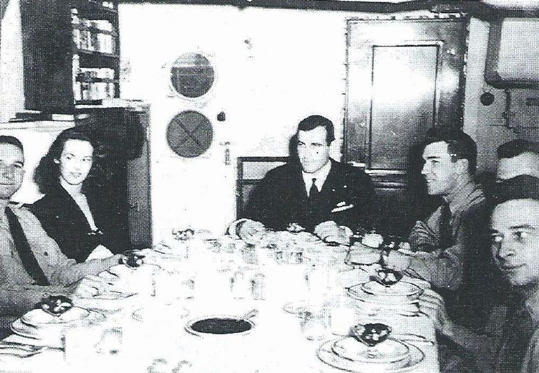 120k | USS Twiggs wardroom party, circa 1944. Left-right: Lt. Albert Hughes, Communications Officer (KIA); Nancy Burke; Lt. Edwin "Ned" Burke, Executive Officer (WIA/Trans. 4/29/45); Engineering Officer Lt. Thomas Shields (Trans. 6/10/45 ); Lt.(jg) Victor Juric. First Lieutenant (KIA). | Anonymous donor in memory of Twiggs and her crew | |