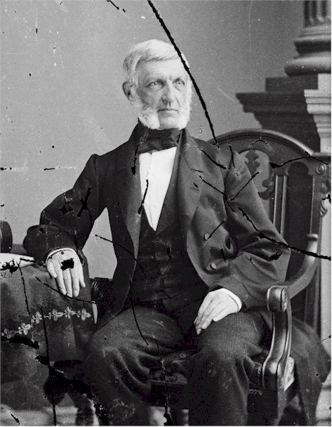 | 86k | George Bancroft born on 3 October 1800 at Worcester, Mass. and was graduated from Harvard University in 1817 and then studied at the University of Göttingen, Germany, where he received a doctorate in 1820. Upon his return to the United States, Bancroft tutored in Greek at Harvard for one year, but left when his foreign social and educational views clashed with those of the students and the faculty alike. He next attempted to publish a book of verse and then to establish a boy's school on the European model, but both ventures failed. In 1831, he began research for his famous History of the United States. He published the first volume in 1834; the second, along with a second edition of the first, in 1837; and the third in 1840. The first three volumes covered only the period of colonization. The success of the History was immediate, though some critics perceived the presence of a distinct bias in favor of Jacksonian democracy. That predilection for the Democratic Party combined with the paucity of Democrats in staunchly Whig New England explains Bancroft's almost meteoric rise in the party ranks. He was a delegate to the party convention in 1844 and played an important role in the nomination of James K. Polk for the presidency. After Polk won election, he rewarded Bancroft by appointing him Secretary of the Navy. Though his term lasted only 18 months, Bancroft made significant contributions to the foundation upon which the Navy rests. Most notably, he established the Naval Academy at Annapolis, Md., and strongly supported the work of the Naval Observatory. In 1846, Bancroft began his career as a diplomat when he went to London as United States minister to Great Britain. In addition to performing his duties as American minister, Bancroft continued research for his History, consulting European sources by then available to him. He returned to the United States in 1849 and concentrated upon his historical research and writing. Between 1852 and 1866, he issued six more volumes of the History carrying the work through the end of the American Revolution. Though initially skeptical about Abraham Lincoln's ability to handle the national dilemma brought on by secession and the Civil War, Bancroft quickly reversed his opinion and gave Lincoln all his support, both written and oral. He also enjoyed warm ties with Lincoln's vice president and successor, Andrew Johnson. That friendship brought Bancroft another diplomatic post in 1867 as United States minister in Berlin. There he witnessed the consolidation of Bismarck's Germany from the North German Confederation to the German Empire. He remained at that post until 1874. Again, Bancroft did not let his diplomatic duties interrupt his historical research. The 10th and final volume of the History came out in 1874. Two years later, he published a revised edition of the entire work condensed to six volumes. In 1882, he issued the History of the Formulation of the Constitution of the United States. Finally, between 1883 and 1885, Bancroft published a final revision of the History in which he corrected many errors and softened some of the floridity of his prose. George Bancroft, truly the "Father of American History," died at Washington, D.C., on 17 January 1891. He was buried in his hometown, Worcester, Mass. Digital ID: cwpbh 02618, Library of Congress Prints and Photographs. | Bill Gonyo | |