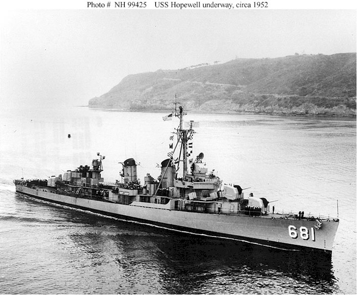 | 155k | USS Hopewell (DD 681) circa 1958, place unknown. Photo from the collection of the Vallejo Naval and Historical Museum. | Darryl Baker | |
