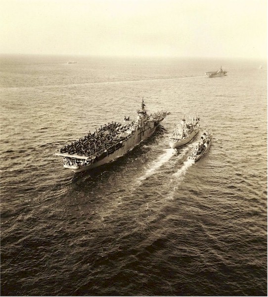 | 246k | USS Hopewell (DD-681) and USS Bon Homme Richard (CVA-31) refueling from the USS Mattaponi (AO-41) on October 2, 1963. US Navy and Marine Corps Museum/Naval Aviation Museum, Photo No. 1996.488.038.044 | Mike Green | |