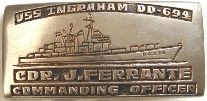 | 80k | Custom belt buckle that belonged to CDR John Michael Ferrante who was in command 1962-1964. | Robert M. Cieri | |
