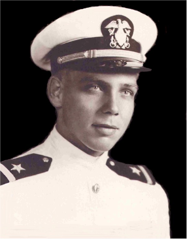 | 56k | Henry Rawlings "Pete" Hamner was born 13 March 1922 in London, England. Appointed to the Naval Academy from Virginia, he graduated and gained his commission in June 1942. Hamner served to fit out and commission several new ships during the war, in addition to serving in the Twelfth Naval District and at Norfolk. He was appointed lieutenant in July 1944. Lieutenant Hamner died 6 April 1945 in USS Howorth, when his ship was crashed by a kamikaze during the suicidal Japanese "kikusui" massed attack of that day off Okinawa where "the fleet had come to stay". Lieutenant Hamner stayed at his post performing his duty as gunnery officer even as a Kamikaze flew straight into his position. His last words were "target angle zero." Lt. Henry K. Hamner was posthumously awarded the Silver Star and Purple Heart. Other awards included the World War II Victory Medal and the Asiatic-Pacific Campaign Medal. Photo courtesy of the USS Hamner (DD-718) Association. | Bill Gonyo/CDR Gene Maresca USN (Ret.) | |
