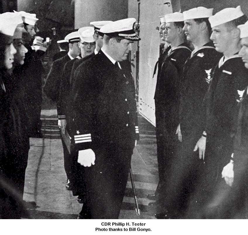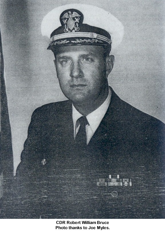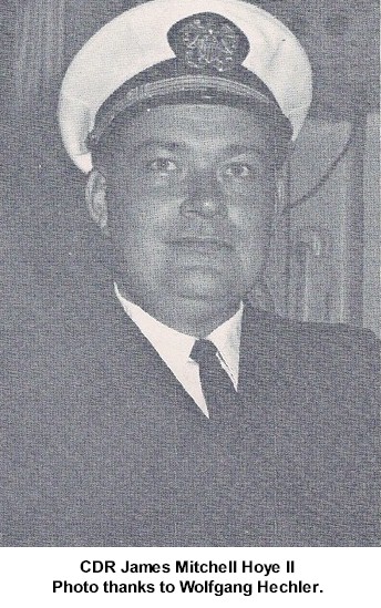 CDR Joseph Blount Swain Jul 12 1946 - Dec 16 1947 CDR Robert Campbell Sleight Dec 16 1947 - 1949 CDR Frank Mahlon Parker 1949 - May 24 1950 CDR Jack Joffre Hughes May 24 1950 - Sep 25 1951 CDR Robert Dickson Lowther Sep 25 1951 - Sep 22 1952 CDR William Stephen Finn Sep 22 1952 - Jan 17 1954 CDR Joseph Ernest Thompson Jr. Jan 17 1954 - Oct 29 1955 CDR Phillip Hitchcock Teeter Oct 29 1955 - Dec 5 1957 CDR Robert Richard Dupzyk Dec 5 1957 - Jan 26 1959 CDR Harold Eugene Stewart Jan 26 1959 - Jan 19 1962 LCDR Henry Gerald Ehleringer Jan 19 1962 - Jul 7 1962 CDR Eugene Crouse Kenyon Jr. Jul 7 1962 - Jan 2 1964 CDR Edward Albert Christofferson Jr. Jan 2 1964 - Mar 5 1965 CDR Henry Roger Pedneault Mar 5 1965 - Nov 4 1966 CDR Douglas Lloyd Newgard Nov 4 1966 - Dec 23 1968 CDR James Mitchell Hoye II Dec 23 1968 - Jul 24 1970 CDR Richard Nelson Blackington Jul 24 1970 - Apr 14 1972 CDR Edward Allan Hamilton Apr 14 1972 - Oct 17 1972 LCDR Harris Sperling Oct 17 1972 - May 18 1973 CDR Francis William McGirr Jr. May 18 1973 - Nov 23 1974 CDR Robert William Bruce Nov 23 1974 - Dec 22 1976 CDR John Epes Whitely Jr. Dec 22 1976 - Aug 9 1979 CDR Charles Norman Bright Aug 9 1979 - Oct 1 1979