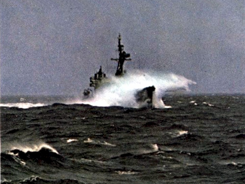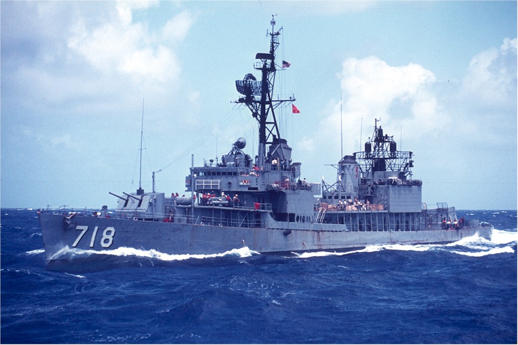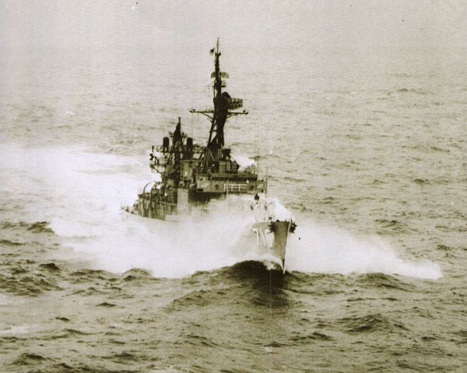 | 124k | USS Hamner (DD-718) underway to Yokosuka, Japan, in heavy weather, in 1969. U.S. Navy photo from the USS John R. Craig (DD-885) 1969 cruise book. | Robert Hurst | |
