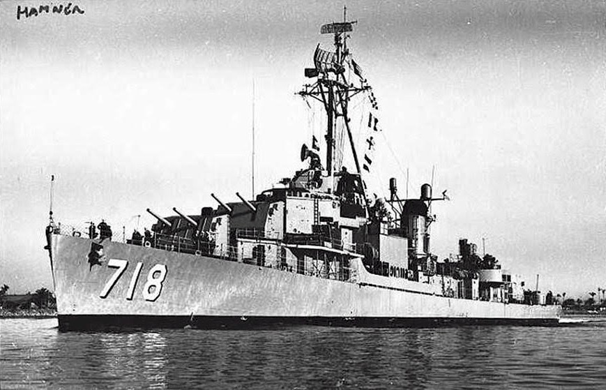 | 115k | USS Hamner (DD-718) underway circa 1971. Official U.S. Navy photograph from the USS Hamner (DD-718) 1970-71 Cruise Book. | Robert Hurst | |