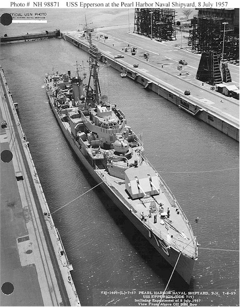 | 131k | USS Epperson (DDE-719) At Pearl Harbor, Hawaii, in May 1958. Official U.S. Navy Photograph, from the collections of the Naval Historical Center. | Fred Weiss |