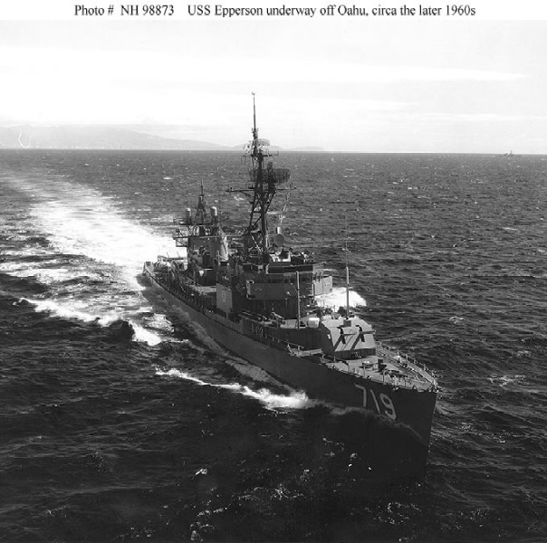 | 95k | USS Epperson (DD-719) underway off Oahu, Hawaii, circa the late 1960's (USN Photo No NH 98873). | Robert Hurst |