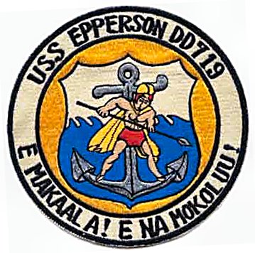 | 137k | USS Epperson (DDE-719) Jacket patch of the ship's insignia, as used prior to 1962. Courtesy of Captain G.F. Swainson, USN, 1969. U.S. Naval Historical Center Photograph. | Fred Weiss |