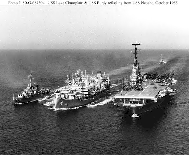 | 110k | Purdy and USS Lake Champlain (CVA-39) refueing at sea from USS Neosho (AO-143), in the Mediterranean, 20 October 1955. Official U.S. Navy Photograph, now in the collection of the National Archives. | Fred Weiss | |