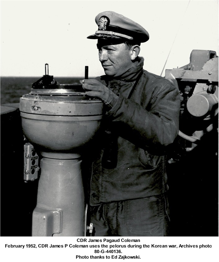 | 47k | Framed by a sister ship's 40mm guns, while en route to the U.S. from Korean War duty with Destroyer Division 122, circa February-March 1952. Photo was received by the Naval Photographic Center in March 1952. Official U.S. Navy Photograph, now in the collections of the National Archives. | Fred Weiss | |