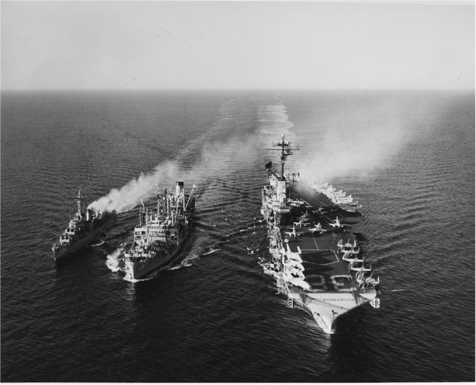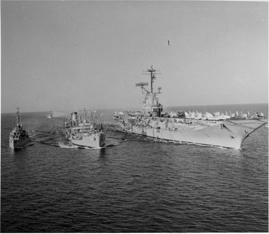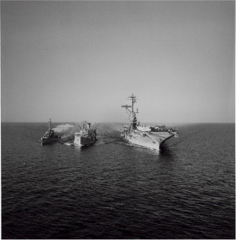 ![]() USS Shangra-La (CVA-38) and USS Purdy (DD-734) refuel from USS Allagash (AO-97) in the Mediterranean, 26 April 1962. US National Archives photo #'s USN 1061088, K-26858 and K-26859 a US Navy photo now in the collections of the US National Archives. | US Naval History and Heritage Command | |||