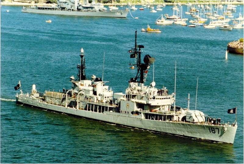 | 99k | Undated, the Pakistani destroyer MSS Nizam (ex-Tughril), ex-USS Henderson, DD-785) at Karachi dockyard, getting some repair work done. She was operated by the Pakistan Maritime Security Agency usually patrolling the EEZ. Photo taken by Shayan Shaukat. | Robert Hurst |