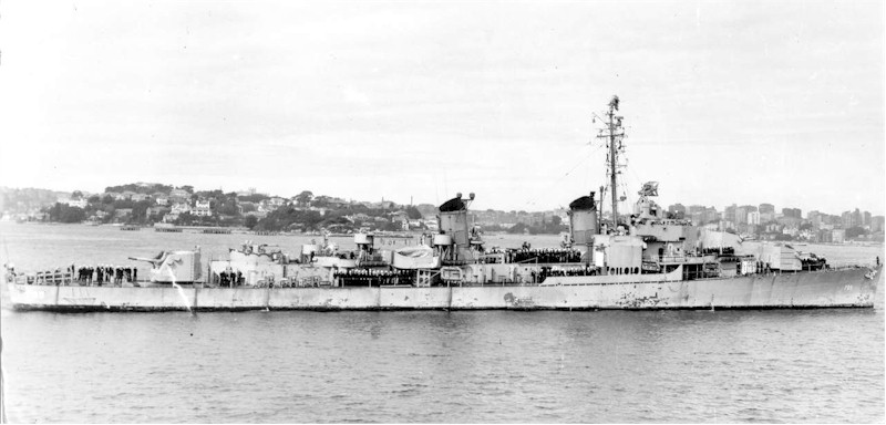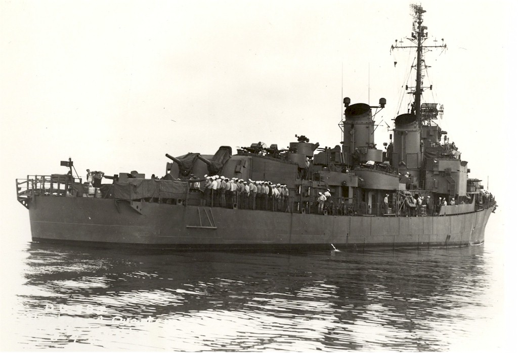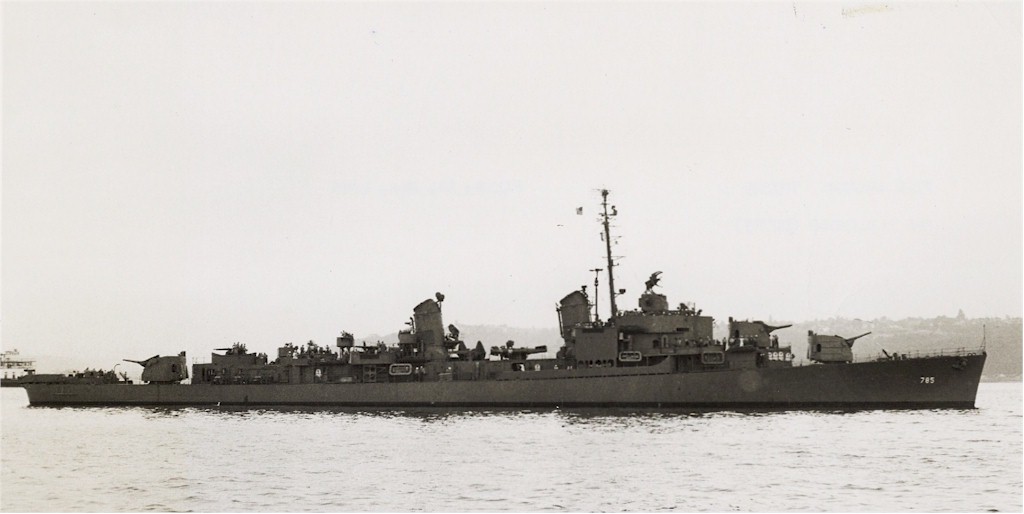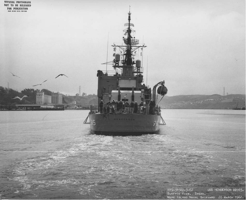 1007k | USS Henderson (DD-785) passing under the Golden Gate Bridge into San Francisco Bay, circa 1946. Photo from the files of the Vallejo Naval & Historical Museum. | Darryl Baker |