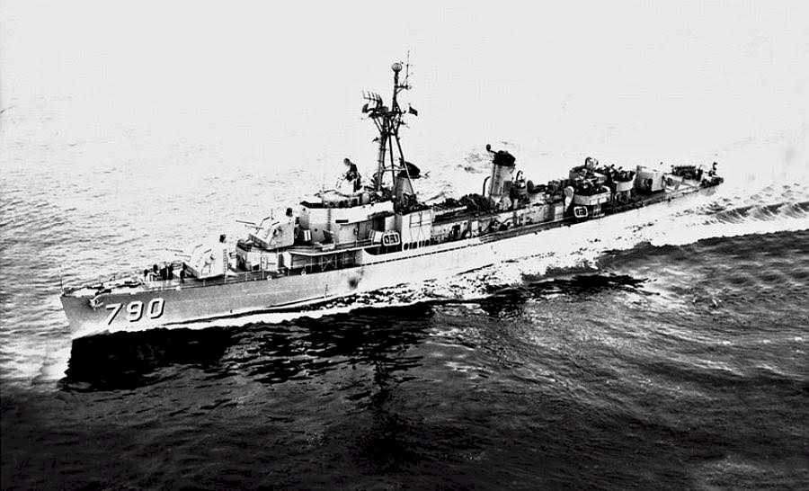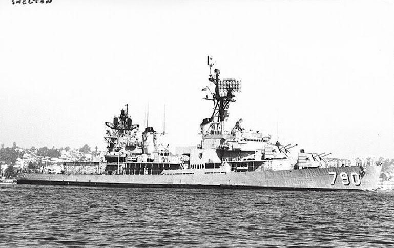 | 217k | Shelton (DD-790) as seen from HMAS Brisbane (D 41) on the Vietnam gunline, 1971. Photo by Bob Westthorp, RAN 1964-1988. | Bob Canchola | |