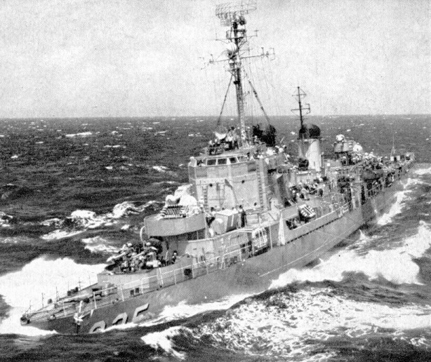 | 124k | USS Carpenter (DDE-825) digs her bow into a whitecap-flecked sea as she comes alongside Boxer during a Formosa Straits patrol, 20 August 1953. U.S. Navy Photograph 80-G-628675, Still Pictures Branch, National Archives and Records Administration, College Park, Md. | Robert Hurst |