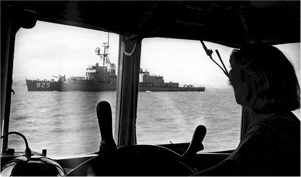 | 150k | USS Carpenter (DD 825) seen from the wheel house of a tug bring a pilot to the ship. The ship was on her way to Stockton, CA for Armed Forces Day on May 15, 1980. | Darryl Baker |