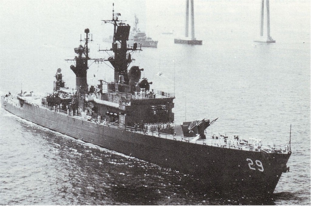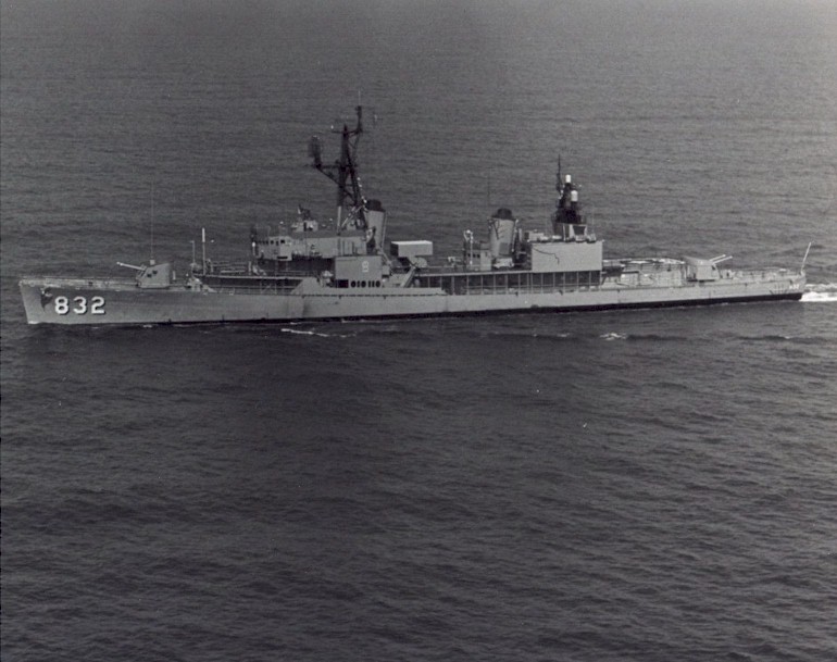 | 65k | Steaming out of San Francisco Bay with its new masts from conversion as a DD to DDR at San Francisco Naval Shipyard in 1964. | Tommy Trampp |