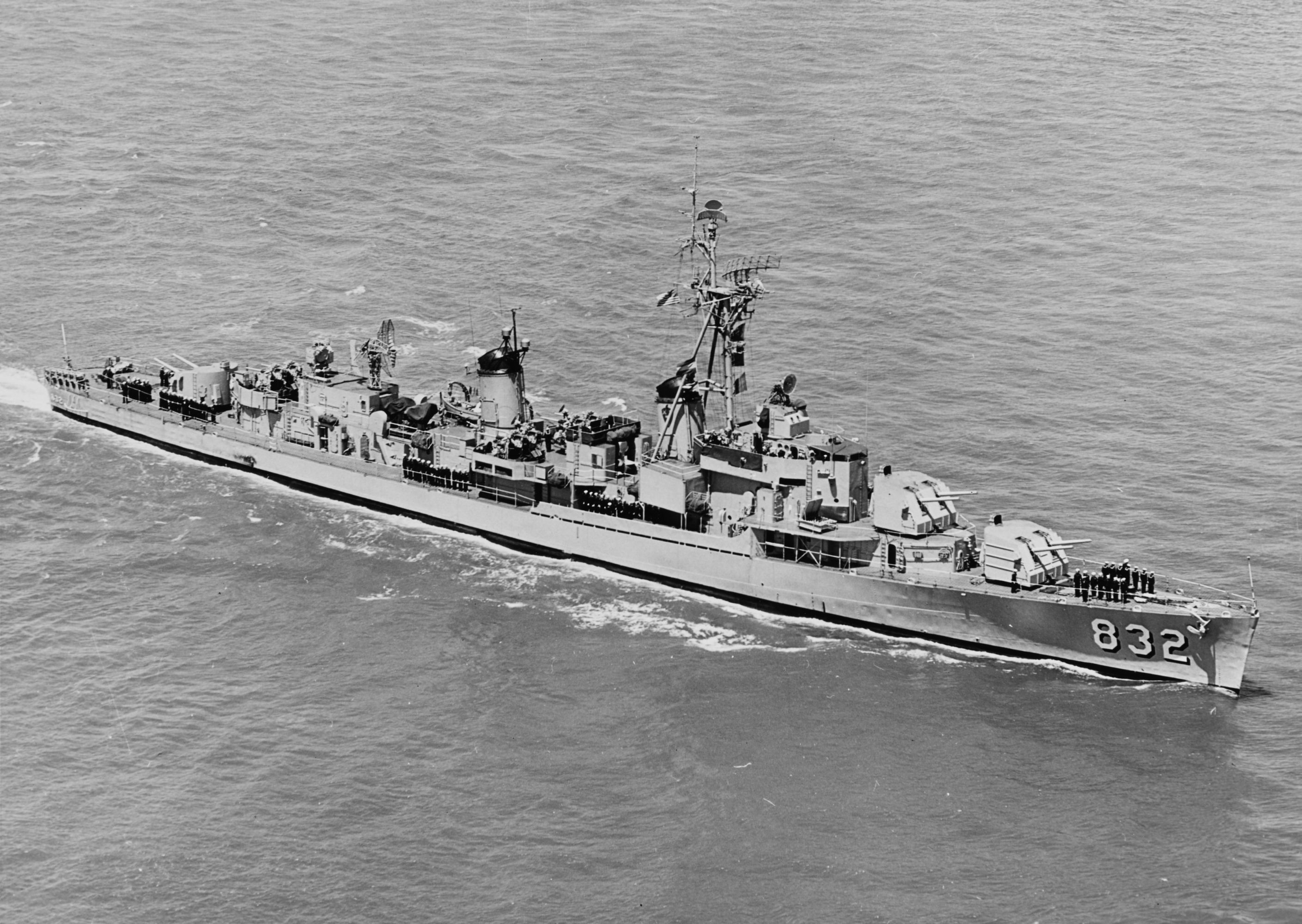 | 826k | Hanson (DDR-832) Underway in San Francisco Bay, California on 13 June 1957, during the review of the First Fleet by Fleet Admiral Chester W. Nimitz. Courtesy of Robert M. Cieri, 1982.