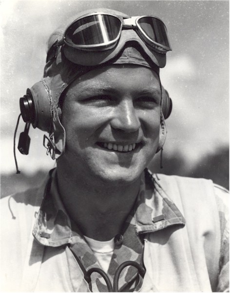 | 64k | Robert Murray Hanson was born 4 February 1920 at Lucknow, India, the son of Methodist missionaries stationed in India. Joining the Marine Corps shortly after the outbreak of World War II, Hanson trained as a fighter pilot and became part of the 25th Marine Fighting Squadron. He was credited with splashing 26 Japanese planes, 20 of them in 6 consecutive flying days. His country recognized the quintuple ace's skill and daring by awarding him the Medal of Honor as well as the Air Medal and the Navy Cross. The Medal of Honor Citation reads in part: "Undeterred by fierce opposition, and fearless in the face of overwhelming odds, 1st Lt. Hanson fought the Japanese boldly and with daring aggressiveness". Lt. Hanson was lost in action when his plane crashed into the sea over Rabaul, New Britain, 3 February 1944. Photo from the USMC History Division. | Bill Gonyo |