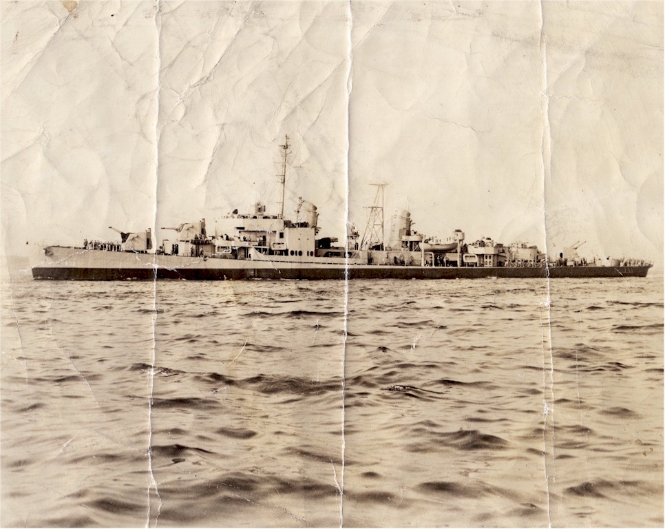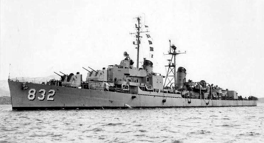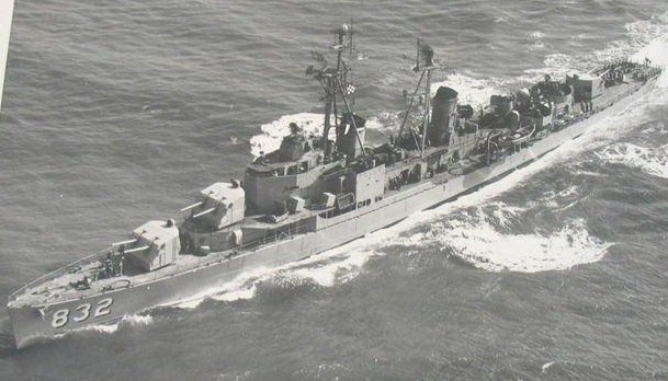 | 91k | USS Hanson (DD-832) as seen from the Australian aircraft carrier HMAS Sydney III, approaching for replenishment at sea, probably in Korean waters sometime between 31 August 1951 to 22 February 1952. Source: Australian War Museum, Photo No. P05890.073. | Mike Green |