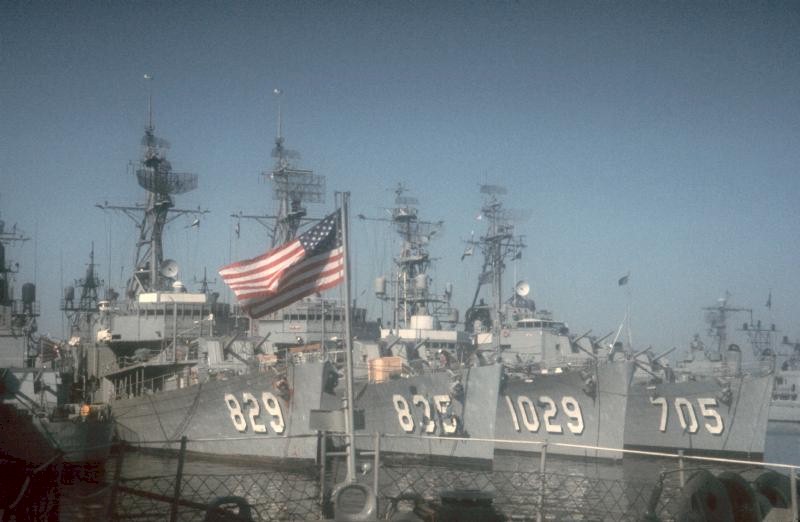 | 148k | Newport, RI 1966, USS Myles C. Fox (DD-829), USS Charles P. Cecil (DD-835), USS Hartley (DE-1029) and USS Compton (DD-705). | © Richard Leonhardt |