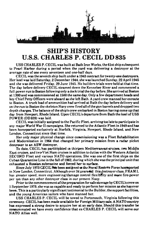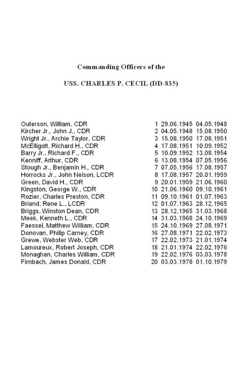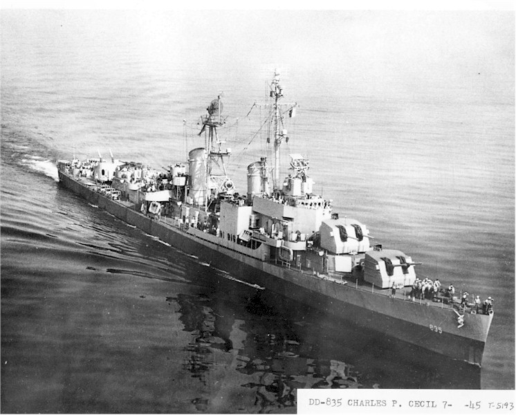 | 218k | USS Charles P. Cecil (DD 835) off Mare Island on June 27, 1947. Photo from the collection of the Vallejo Naval and Historical Museum. | Darryl Baker |