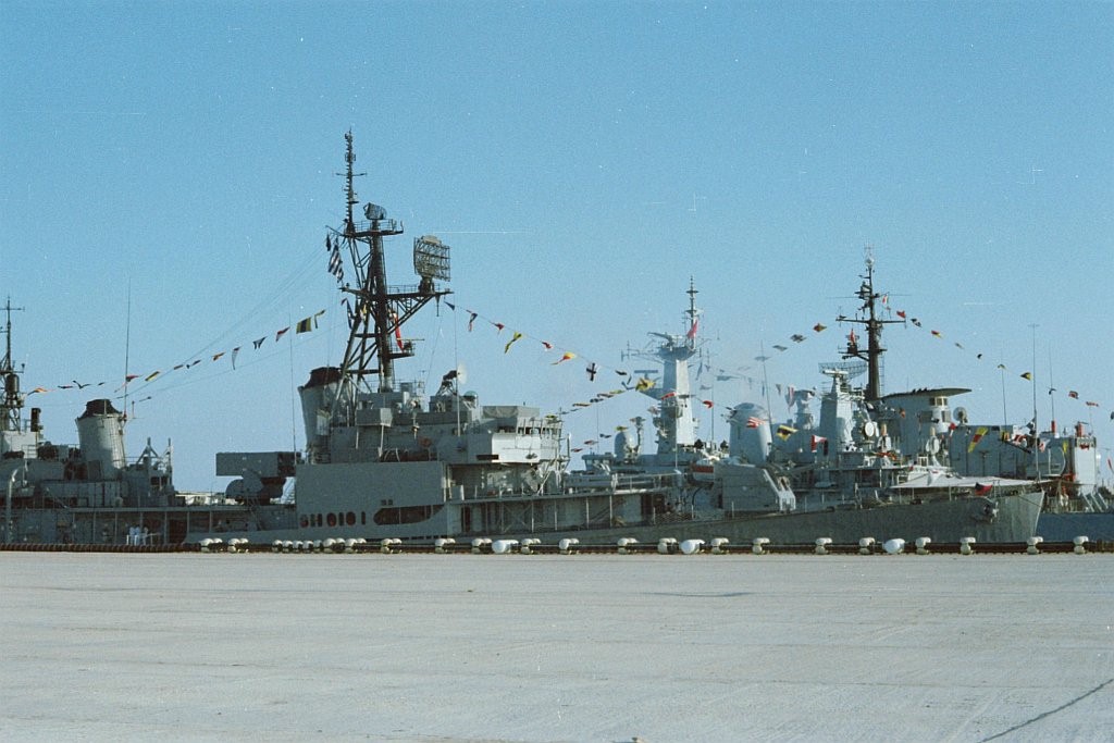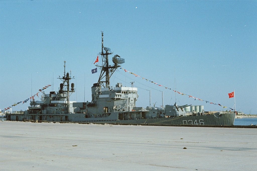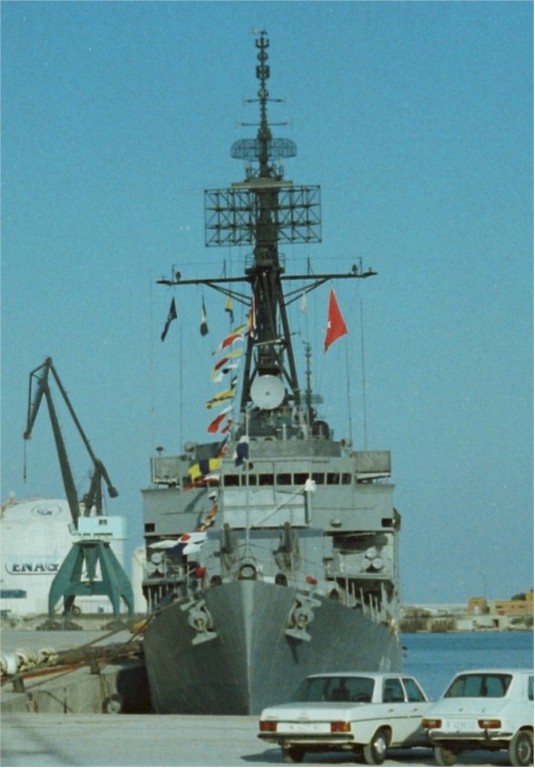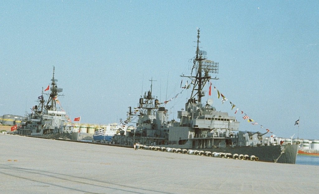 ex-USS Charles P. Cecil (DD 835) as the Greek DD Apostolis (D-216), and ex-USS Robert A. Owens (DD 827) as the Turkish Alcitepe (D-347), September 18 1983, during a NATO NAVOCFORMED port call to Barcelona. Ships in the background in the second photo were the British frigate HMS Arethusa (F38) and the Italian frigate Alpino (F580). | Fabio Peña |