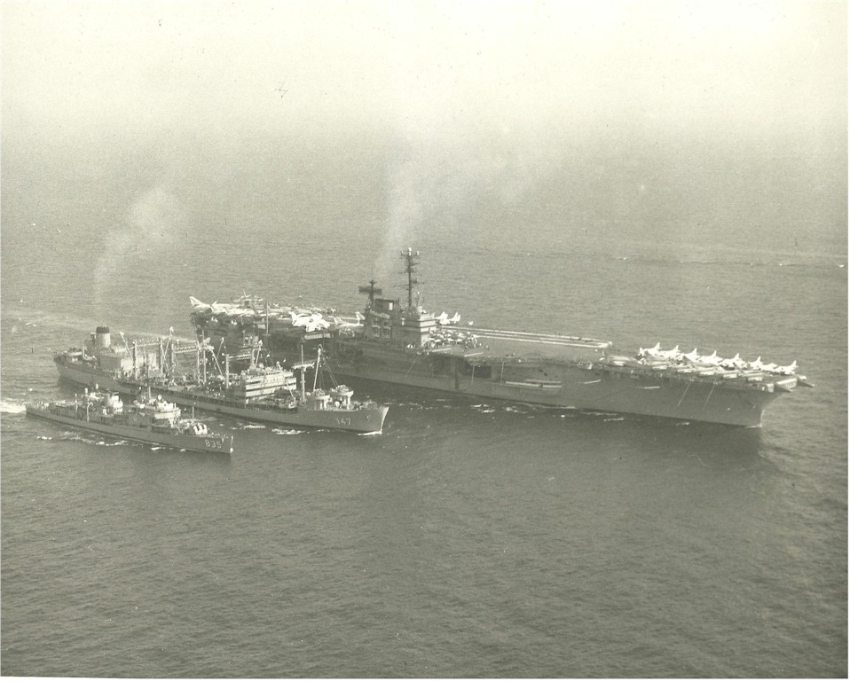 | 155k | Mediterranean Sea, October 5 1965, USS Truckee (AO-147) refueling USS Forrestal (CVA 59) and USS Charles P. Cecil (DD 835), during an underway replenishment off the coast of Genoa, Italy. Official Navy Photo. Thanks to Ken Killmeyer, USS Forrestal Association historian, who helped with the date and location of this picture. | Robert M. Cieri |
