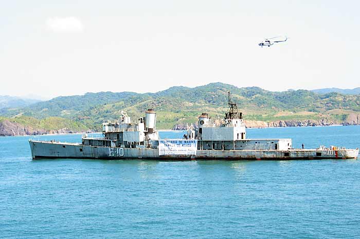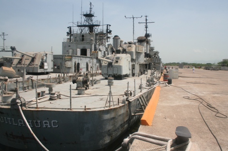 | 82k | (L-R) USS Vogelgesang (DD-862) and USS John Rodgers (DD-574) in Lazaro Cardenas, Mexico in July 2006. The Rodgers is being returned to Mobile Bay for restoration while the Vogelgesang will be sunk as an artificial reef. Photos by the restoration crew who made the trip to Mexico to bring the Rodgers home and strip whatever they could use from the Vogelgesang. The restoration crew muster was Ward Brewer (Captain), Ken Guiles (Number 1), John Donovan (Gunnery Officer), John Nowakowski (Chief Engineer), Sean Quigley (Able Seaman), Jeremy Byers (Able Seaman), Jim Nowak (Chief Photographer's Mate) and Rob Harshbarger (Intel Officer). | Tim Rizzuto/Anthony Finchum |