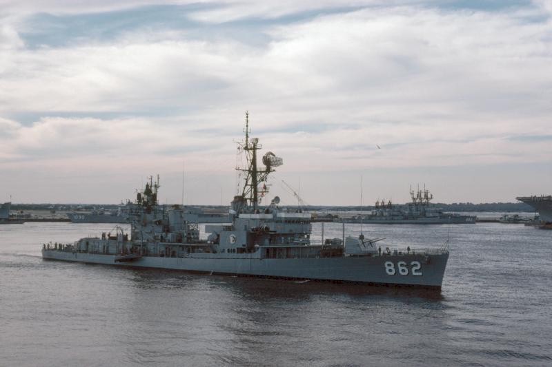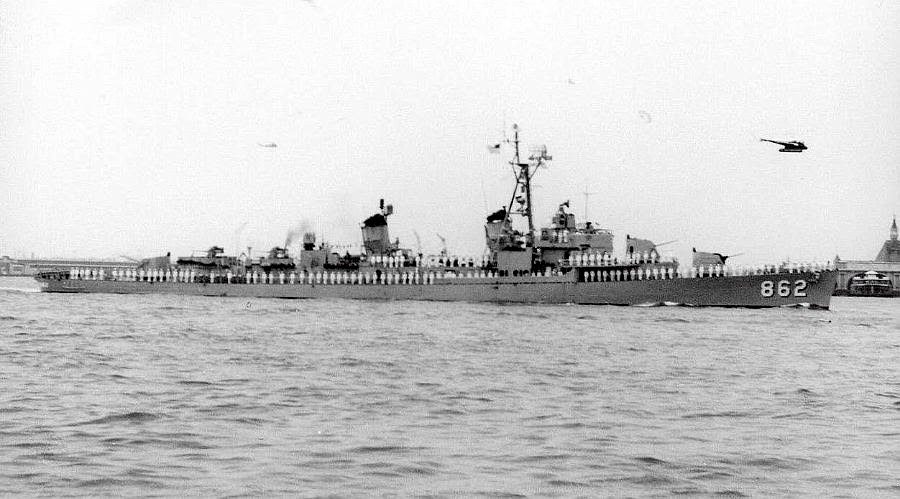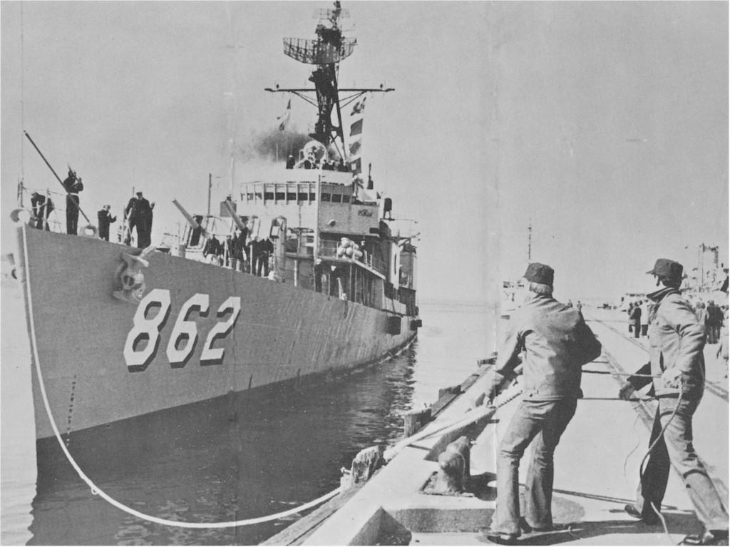 | 130k | Undated, USS Vogelgesang (DD-862) preparing to get underway for her last cruise with the USS Damato (DD-871) inboard. | Ed Zajkowski |