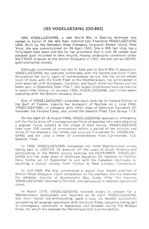 | 130k | 1959 picture of VOGELGESANG before her FRAM conversion while she was still in her all gun and surface torpedo configuration. | Captain Vincent Cooke, USN (Ret) |