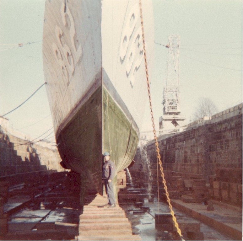 | 111k | Circa November 1967 - September 1968 in dry dock in La Spezia, Italy to fix a rudder with George in front. | George Brock |