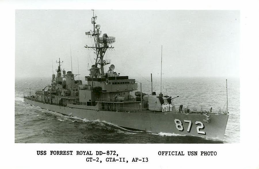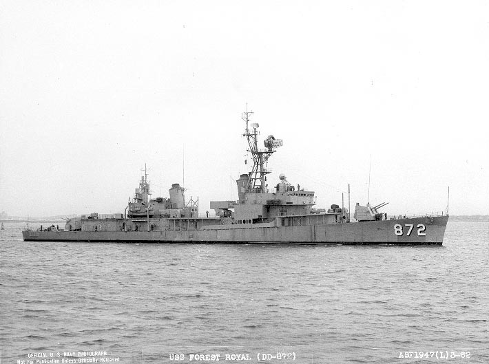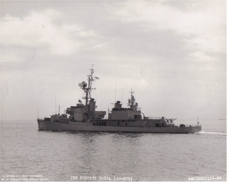 | 69k | USS Forrest Royal (DD-872) in Boston Harbor, May 1962, following FRAM modernization. Boston Naval Shipyard photo ASF3921(L)5-62, Boston National Historical Park Collection, NPS Cat. No. BOSTS-11152-3921. | Stephen P. Carlson, Boston NHP, Charlestown Navy Yard. |