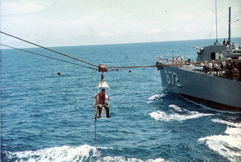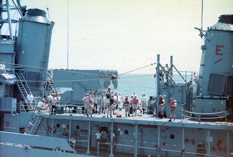 | 131k | View from the USS Hancock (CVA-19) while the Forrest Royal was alongside refueling in April 1967 off the coast of Vietnam. | Charles Dehnert |