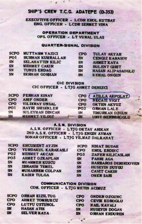 | 91k | Undated, location unknown. From the collection of Murat Esbahoglu, MCPO (Ret.) Turkish Navy. | Yucel M.Umar, CPO (Ret.) Turkish Navy |