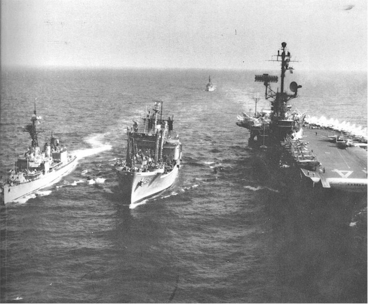 | 121k | First quarter 1966, Haleakala (AE-25) rearming Henry W. Tucker (DD-875) left, and Ticonderoga (CVA-14) right, off the coast of Vietnam. US Navy photo. | Bill Toohey ETC USN Ret USS Haleakala Feb 66 - Nov 68. | |