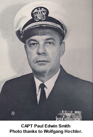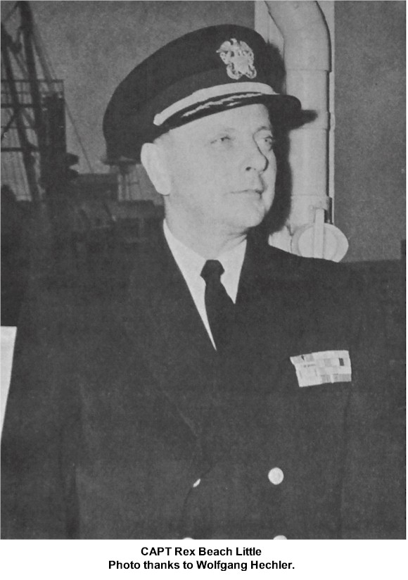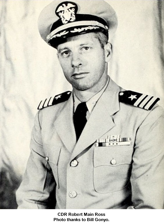 CDR Bernard Henree Meyer Mar 12 1945 - Nov 21 1946 CDR James DuGué Ferguson Nov 21 1946 - Aug 19 1948 CDR Rex Beach Little Aug 19 1948 - Apr 1 1950 CDR George Pearsall Rogers Apr 1 1950 - Sep 7 1951 CDR David Lloyd George King Sep 7 1951 - Jan 15 1953 CDR Frederick Richard Hoeppner Jan 15 1953 - Mar 29 1954 CDR Robert Main Ross Mar 29 1954 - Apr 28 1956 CDR Robert Leo Thienes Apr 28 1956 - Feb 5 1958 CDR Kay Sanford Irwin Feb 5 1958 - Jan 8 1960 CDR Ralph Morgan (Swede) Hanson Jan 8 1960 - Aug 25 1961 CDR Egon Henry Werdelmann Aug 25 1961 - Jan 8 1963 LCDR Paul Edwin Smith Jan 8 1963 - Sep 23 1963 CDR Burr Curtis Wilcox Jr. Sep 23 1963 - Dec 13 1965 CAPT John Henry Donald Williams Dec 13 1965 - Jul 3 1967 CDR Sheldon David Kully Jul 3 1967 - Jul 19 1969 CDR Warren Lewis Story Jul 19 1969 - Apr 22 1971 CDR Paul Christian Nelson Apr 22 1971 - Aug 8 1972 CDR John Francis Joseph Fox Aug 8 1972 - Sep 28 1973 LCDR Eugene Mallory (Gene) Hall Sep 28 1973 - Dec 3 1973