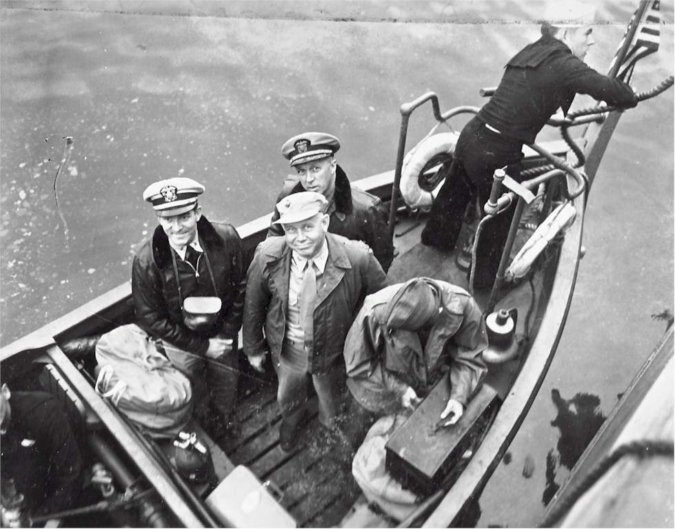 | 156k | Rear Admiral John Dale Price shakes hands with the skipper of the destroyer USS Henry W. Tucker(DD 875), 29-30 January 1946. Item is part of a scrapbook that details the wartime service of Rear Admiral John Dale Price. Photo courtesy of the National Naval Aviation Museum. | Bill Gonyo | |