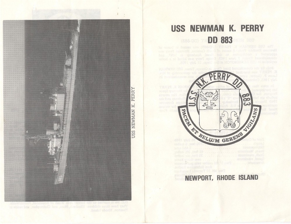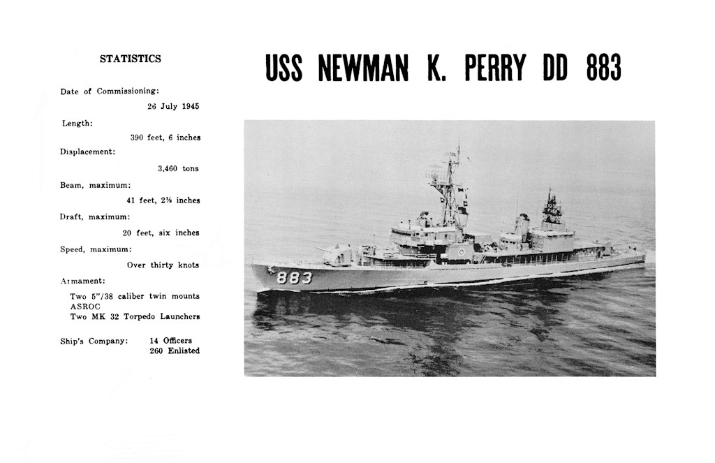 | 85k | Photo #: NH 106434. USS Newman K. Perry (DD-883) underway in Narragansett Bay, Rhode Island, 6 May 1969. Photographed by PH3 Carl L. Hayes. Official U.S. Navy Photograph, from the collections of the Naval History and Heritage Command. | Tony Cowart |