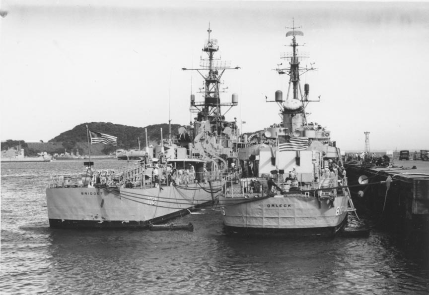 | 75k | USS Orleck (DD-886) and USS Bridget (DE-1024) moored at Yokosuka, fall 1959. | Derick Hartshorn |