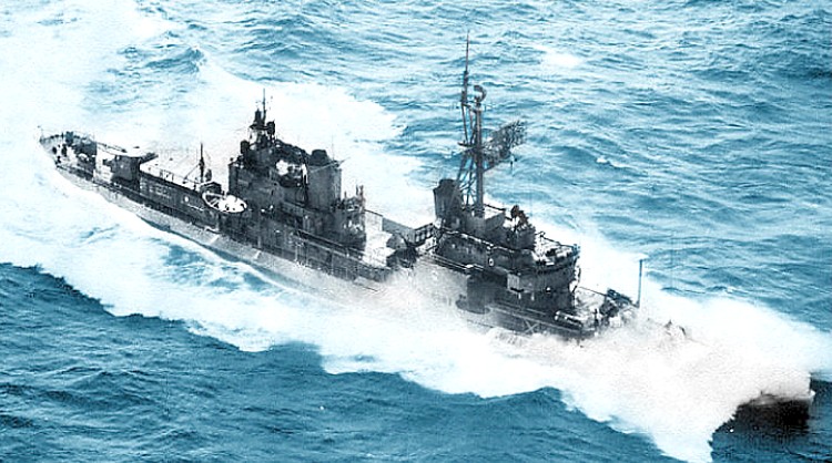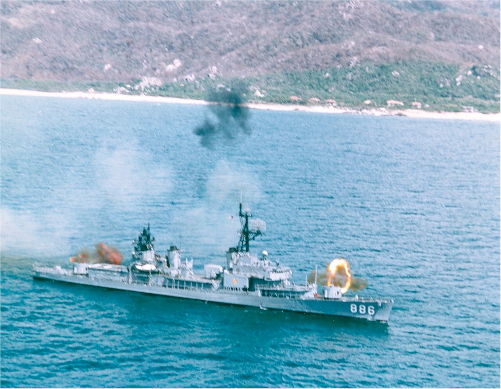 | 199k | Orleck firing on a Viet Cong stronghold near Vung Tau, at the mouth of the Saigon River, March 1966. National Archives photo K-31267, by Photographer's Mate First Class J.L. Means | Ed Zajkowski |