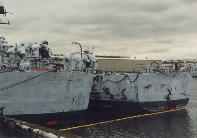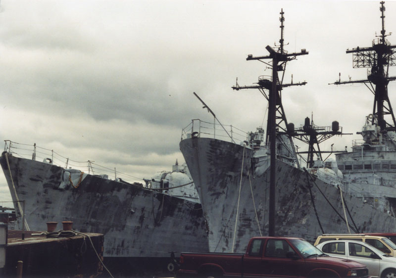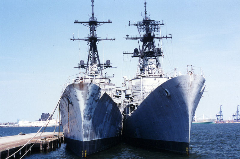 | 75k | Forrest Sherman inboard of Blandy viewed from the Patapsco River in early 1995. | Larry Backus |
